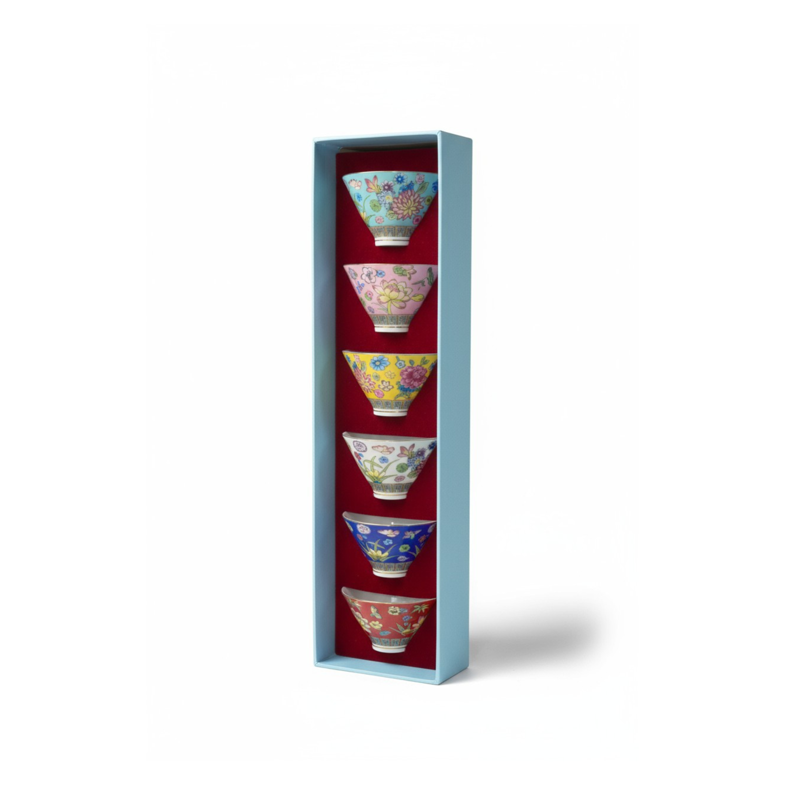Transform your tea ritual with the Artisan Imperial Collection. Featuring five uniquely colored cups with intricate, hand-finished floral designs, this set combines traditional elegance with a modern, vibrant flair.
