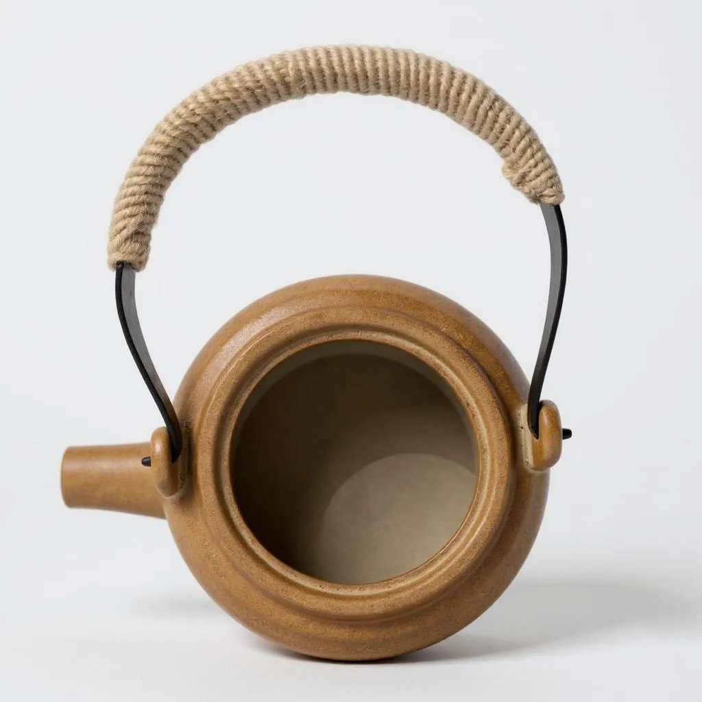 Add a touch of rustic charm to your tea time with this beautiful ceramic teapot! This unique set includes a ribbed brown teapot with a sturdy rope handle and a matching ceramic warmer stand, perfect for keeping your tea hot for longer.