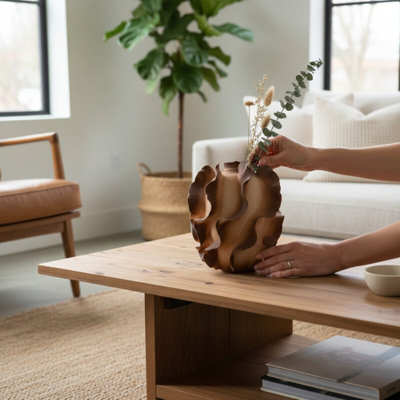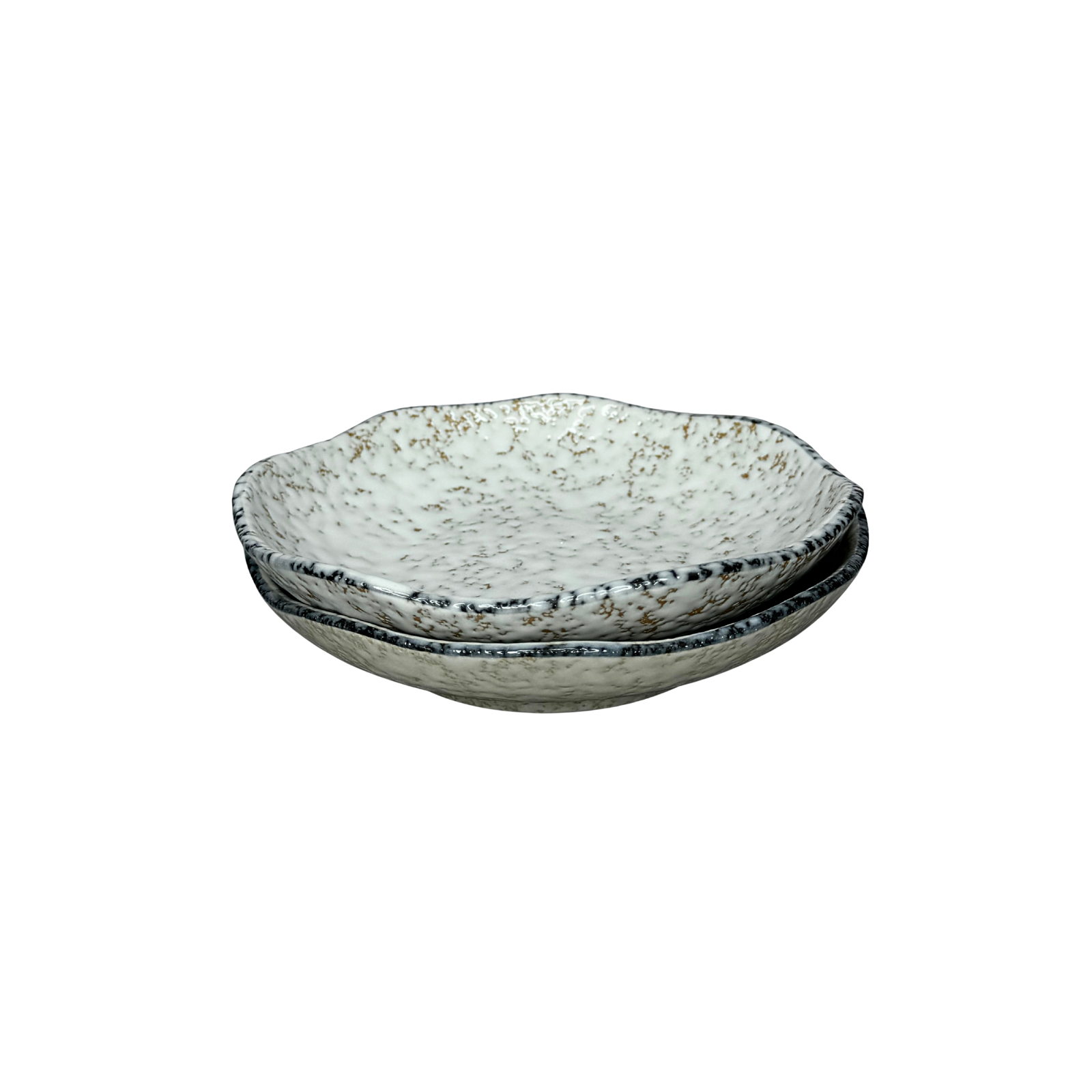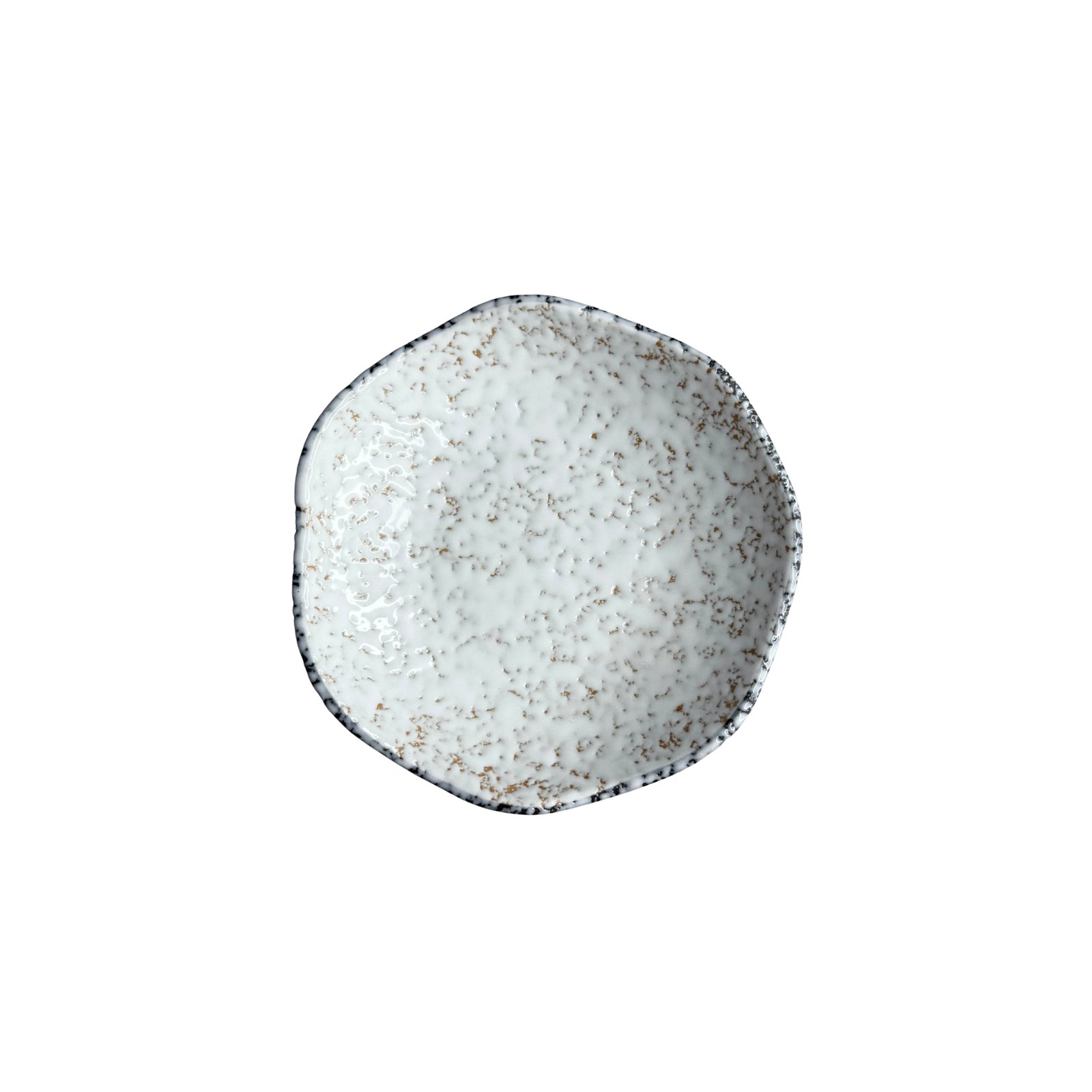 Designed with a free-form, wavy silhouette, these plates move away from the rigid geometry of traditional dinnerware. Each piece features a creamy white glaze peppered with warm, amber-toned speckles, mimicking the natural variation of sun-drenched stone or toasted grains.