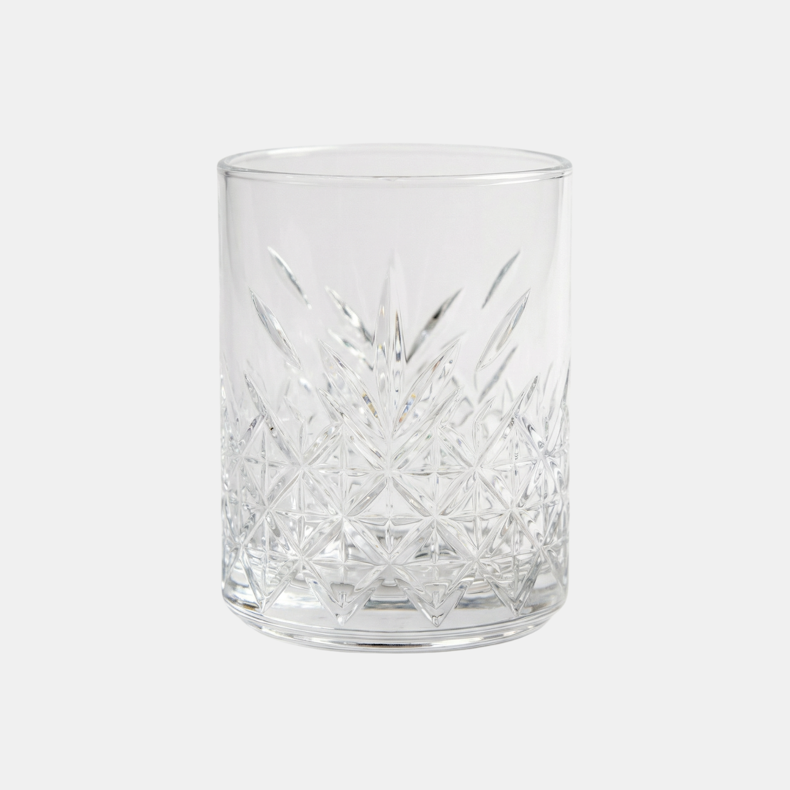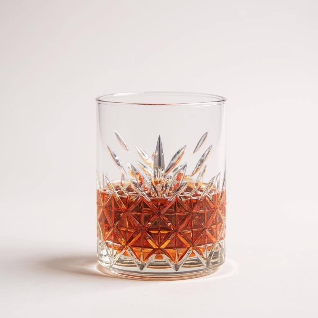 There’s something about the weight of a heavy glass that makes the first sip taste better. Inspired by vintage mid-century barware, this glass features a sunburst of crystalline cuts that radiate from the base. Weighted for a premium feel in the hand, it’s the ultimate vessel for neat pours or spirits on the rocks.